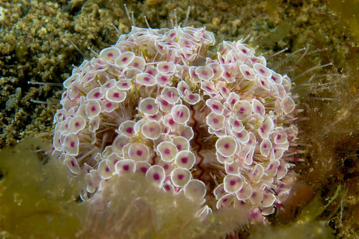 Este es un erizo venenoso de simetría radial que libera dos toxinas diferentes en sus pedicelarios: