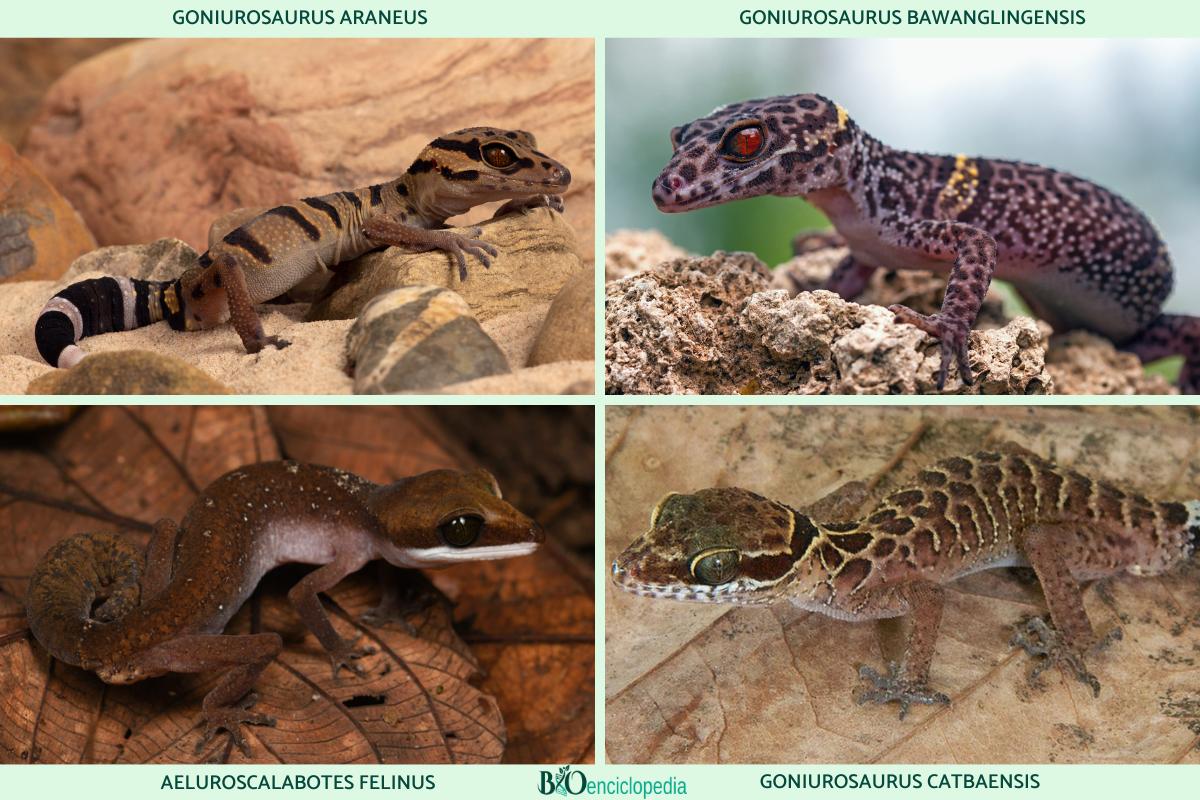 A continuación, podrás ver los nombres de algunas especies de geckos que pertenecen a la familia Eublepharidae: