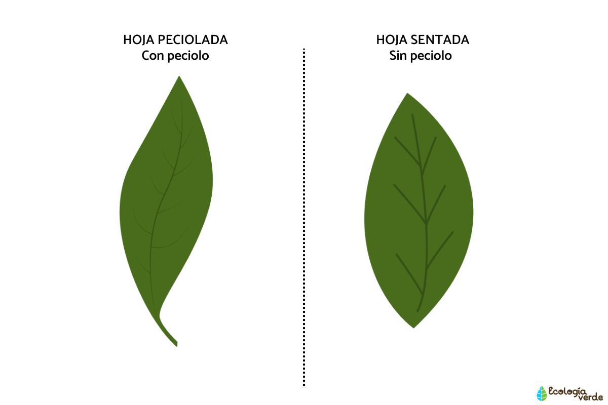 - Hojas pecioladas: cuentan con un pecíolo que conecta el limbo a la planta. Este pecíolo puede tener tamaños muy distintos según las características concretas de cada planta.