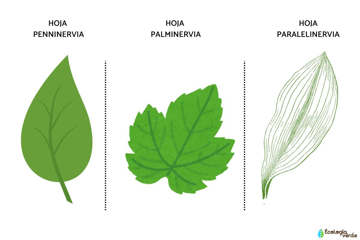 Se pueden encontrar tres principales tipos de hojas según su nervadura, diferenciados de esta forma: