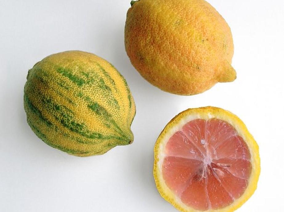 Entre los tipos de limones raros destaca la Variegated Pink, una variedad del Lisbon o el Eureka cuyos frutos muestran una pulpa y un zumo de tonos entre rosado y naranja, cualidad que a la que debe su nombre. Otra característica típica de los limoneros Variegated Pink es el curioso patrón multicolor que tienen sus hojas.