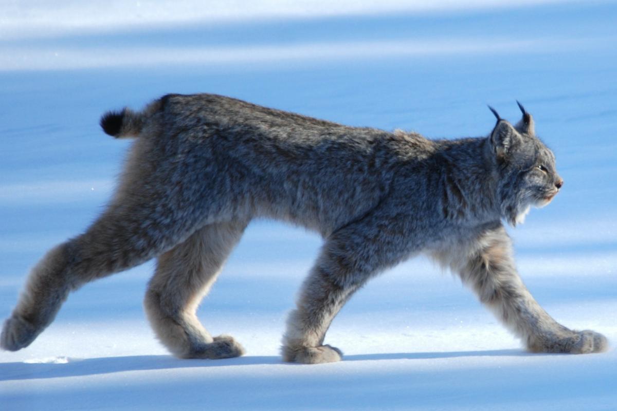 El Lynx canadensis tiene un pelaje muy grueso para impedir que el frío llegue a su cuerpo, pues vive en las tundras y bosques boreales de Canadá. Está asociado a ecosistemas con nieve. Mide entre 80 a 106 centímetros.