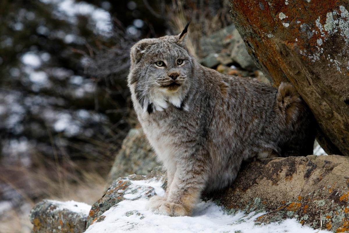 El lince candiense (Lynx canadensis) es originario principalmente en Canadá, sin embargo, también está presente en Nueva Inglaterra, y en Utah, perteneciente al país estadounidense. Estos animales felinos viven en bosques densos o abiertos, en tundra e incluso en zonas con bastantes rocas. Morfológicamente, presenta una coloración marrón amarillento en su cuerpo, aunque con un aspecto grisáceo en su parte superior y más beige en la parte inferior. Su peso varía desde 4,5 a 17,3 kg y tienen una esperanza de vida de 14,5 años.