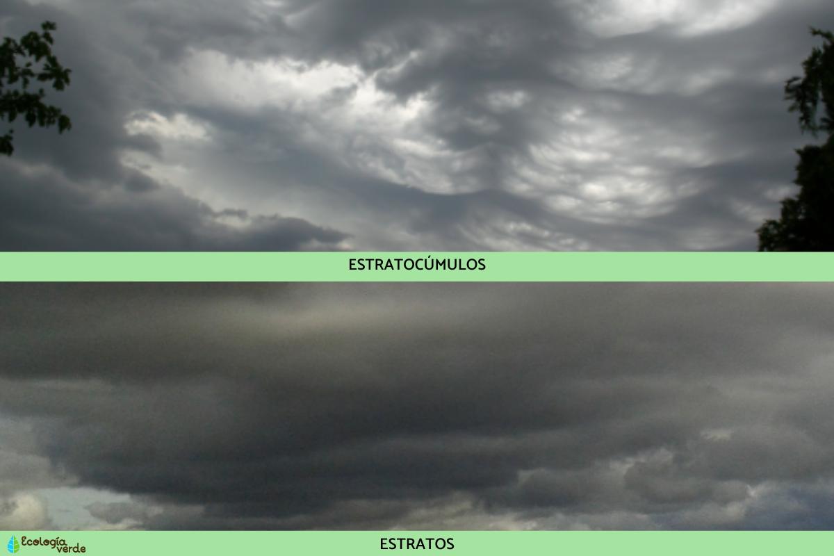 Aquí te mostramos fotos de los tipos de nubes aquí mencionados y en el mismo orden, arriba estratocúmulos y abajo estratos.