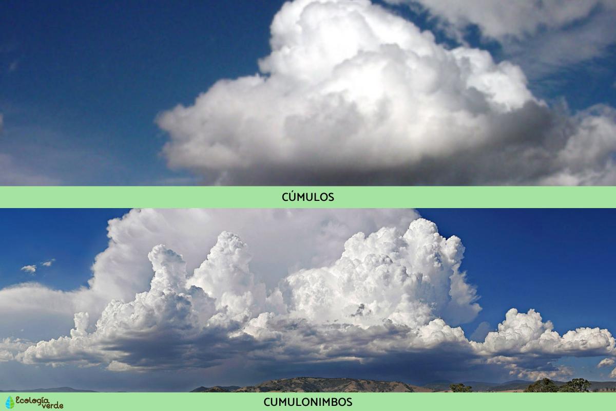 Los cúmulos que crecen mucho pueden llegar a formar cumulonimbos. Son nubes de base oscura, que se puede encontrar a poco más de 500 metros del suelo y con una parte superior que supera altitudes de 10.000 metros. Son impresionantes e imponentes, y contienen agua en la base y hielo en la parte alta. Pueden provocar precipitaciones de todo tipo.