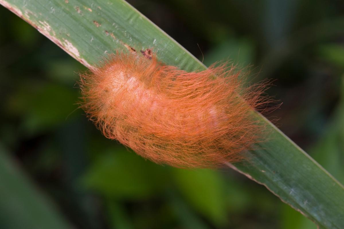 Es una de las orugas negras con pelos más comunes, identificable porque tiene los dos extremos del cuerpo de color negro, y el centro color naranja pardo. Se encuentran en todas las zonas frías y templadas del mundo. A pesar de las setas que pueden parecer intimidantes, no son tóxicas ni causan problemas en la piel. De hecho, es una de las orugas parecidas a la procesionaria, pero son dos especies diferentes y estas no son peligrosas.