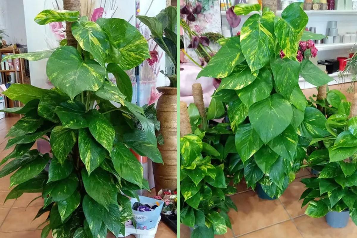 El Pothos manjula es un tipo de poto que se luce con hojas hermosamente dibujadas, tipo marmoleado, en colores verde y blanco, con destellos amarillos claros. Es muy fácil de cuidar, muy resistente y muy lucidora. Tiene grandes hojas que destacan por su aporte estético. Su peculiaridad es que no tiene dos hojas que sean iguales, todas son diferentes, ya sea en colores o en los patrones de los mismos, que parecen haber sido elaborados por los pinceles de un pintor. Entre más tiempo la dejemos cerca de la luz, más partes blancas tendrá. Si las hojas comienzan a verse decaídas y menos tersas, es porque le está faltando riego.