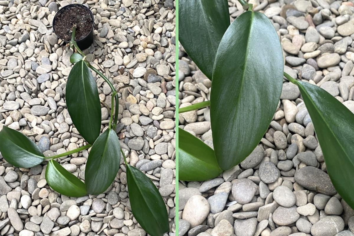Este poto es un tipo raro, originario de Malasia que, sin embargo, ha comenzado a popularizarse rápidamente. Es delicado en su tallo ya que se muestra delgado y fino, al igual que sus hojas, que se presentan un tanto alargadas y con punta afilada, color verde oscuras. Pare muy frágil, pero realmente es una planta fuerte, como el resto de los potos, y de mucha durabilidad.