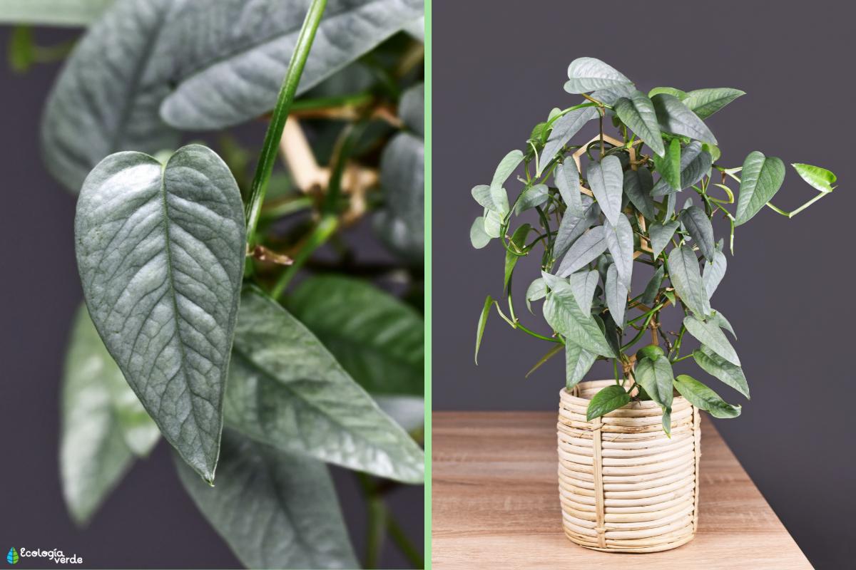 También llamado poto azul, es una hermosa planta de hojas verdes y entre grisáceas y azuladas, que a veces tiene un brillo metálico. Es originaria de Filipinas y se da muy bien en macetas que se ubiquen alto, para que la planta cuelgue. Puede llegar a medir hasta 3 metros de largo en buenas condiciones.