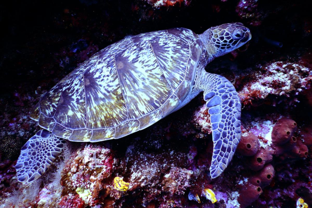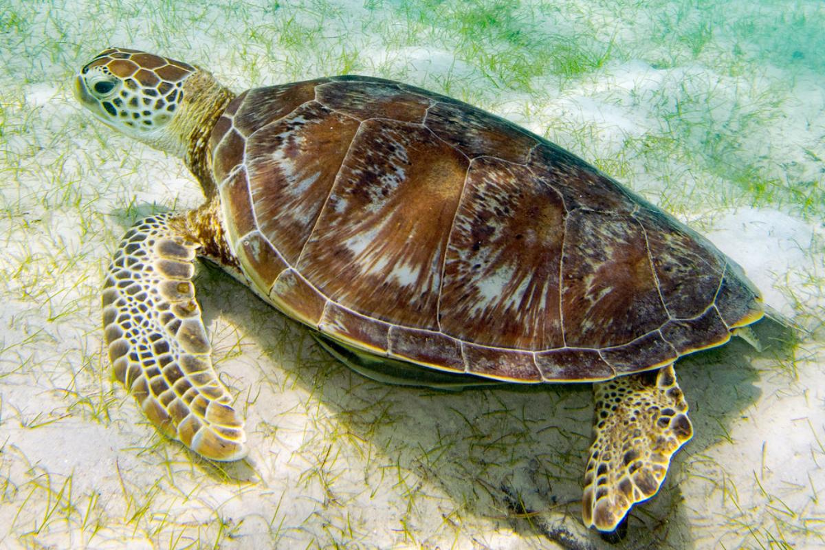 - Tortuga verde (Chelonia mydas): en peligro de extinción.