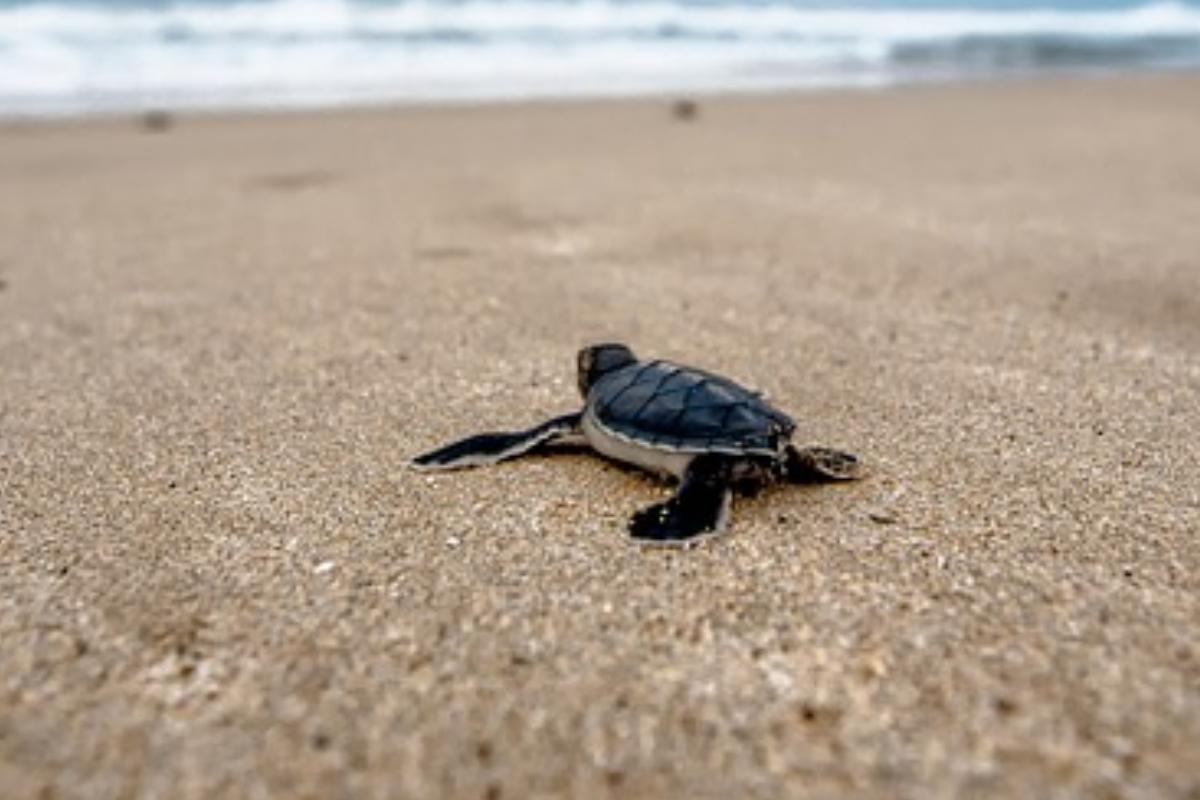 - Las crías de las tortugas marinas nacen en la arena de las playas.