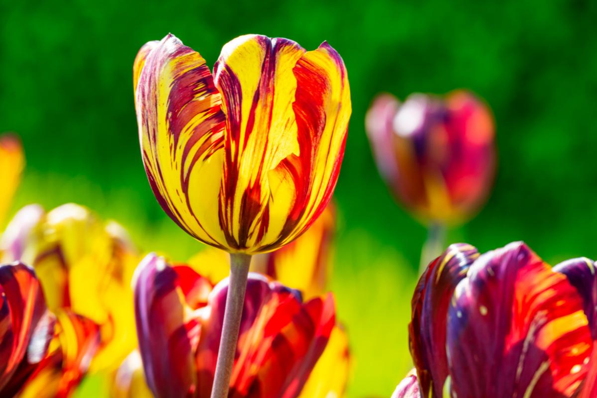 Otra de las variedades de tulipanes es el tulipán Rembrandt. El famoso pintor da nombre a este tulipán cuyas flores parecen haber sido pintadas con pinceladas de su estilo. Su peculiar y llamativa combinación de colores se consigue contagiando a la planta con un virus determinado, por lo que si se mezcla con otros tulipanes corre el riesgo de contaminarlos. Es un tulipán bastante alto, de hasta 70 cm. ¡No dudes en comprar este tipo de tulipanes!