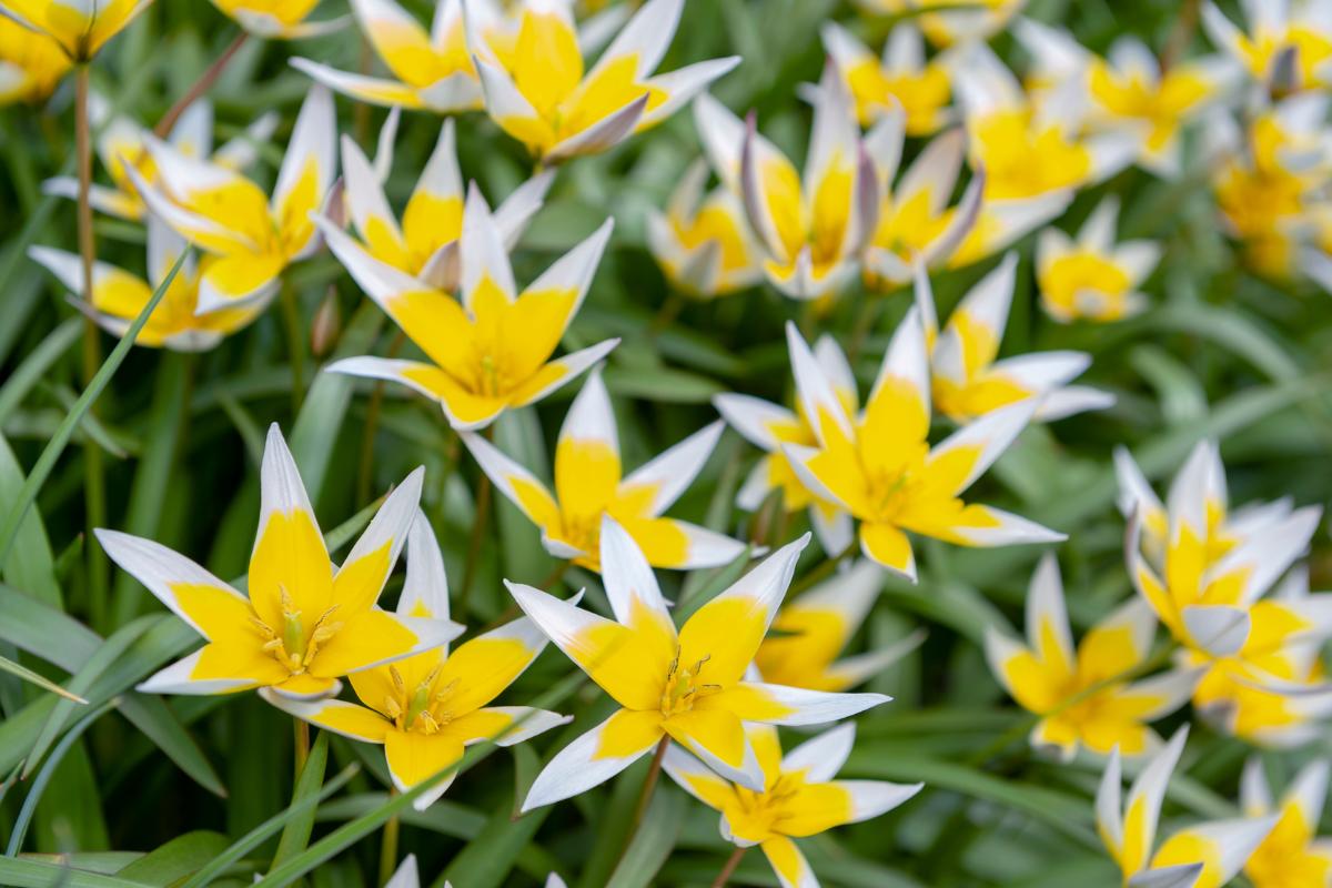 Si el Angélica parece una peonía, el tulipán Tarda guarda grandes semejanzas con los liliums. Ofrece una corola grande en forma de estrella, con seis pétalos que se abren dejando los estambres a la vista. Su intenso amarillo, salpicado de blanco en las puntas de los pétalos, hace difícil pasar por alto las flores de este tulipán, que pese a su escasa altura de hasta 15 cm se hace con la vista de cualquiera.