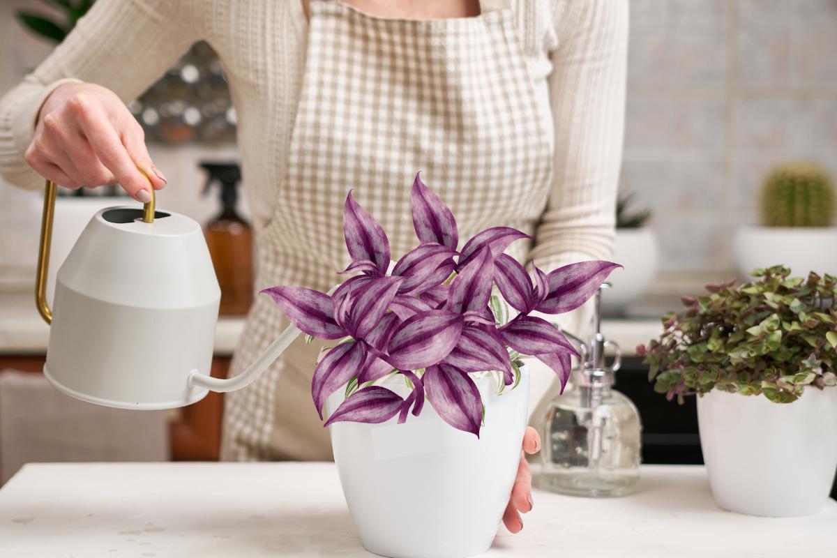 Tradescantia pallida o purpurina: cuidados, riego y esquejes