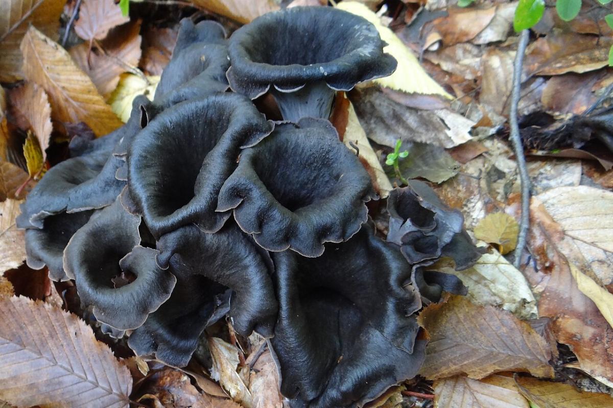 Las trompetas de la muerte son setas de nombre científico Craterellus cornucopioides, también llamadas trompetas negras, cuerno de la abundancia, cuernos de ciervo, trompetas de los muertos, etc. Tienen un aspecto característico, ya que tienen forma de trompeta o embudo hueco de color oscuro (negro-grisáceo a marrón oscuro).