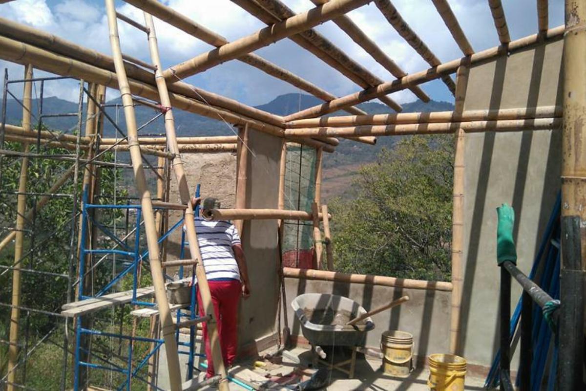 Entre otros usos y productos que se obtienen del bambú y aprovechando que el tallo principal del bambú es una madera muy dura y fuerte a la vez que flexible, es un buen material para fortalecer casas.