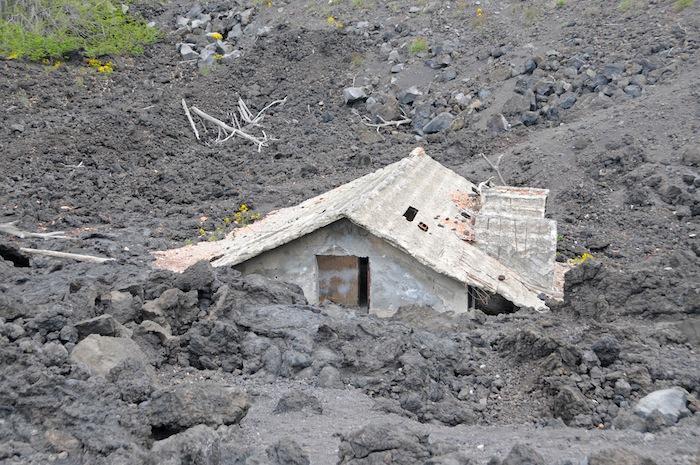 Hogar de Sicilia, Italia, sepultado tras una erupción del volcán Etna.[/caption] Son eventos muy peligrosos, pues además de producirse con violencia, afectan numerosos pueblos y ciudades que se encuentran alrededor; al menos, 10 poblaciones se hallan en sus periferias y más de 3 millones de personas se encuentran en un radio de 100 kilómetros.