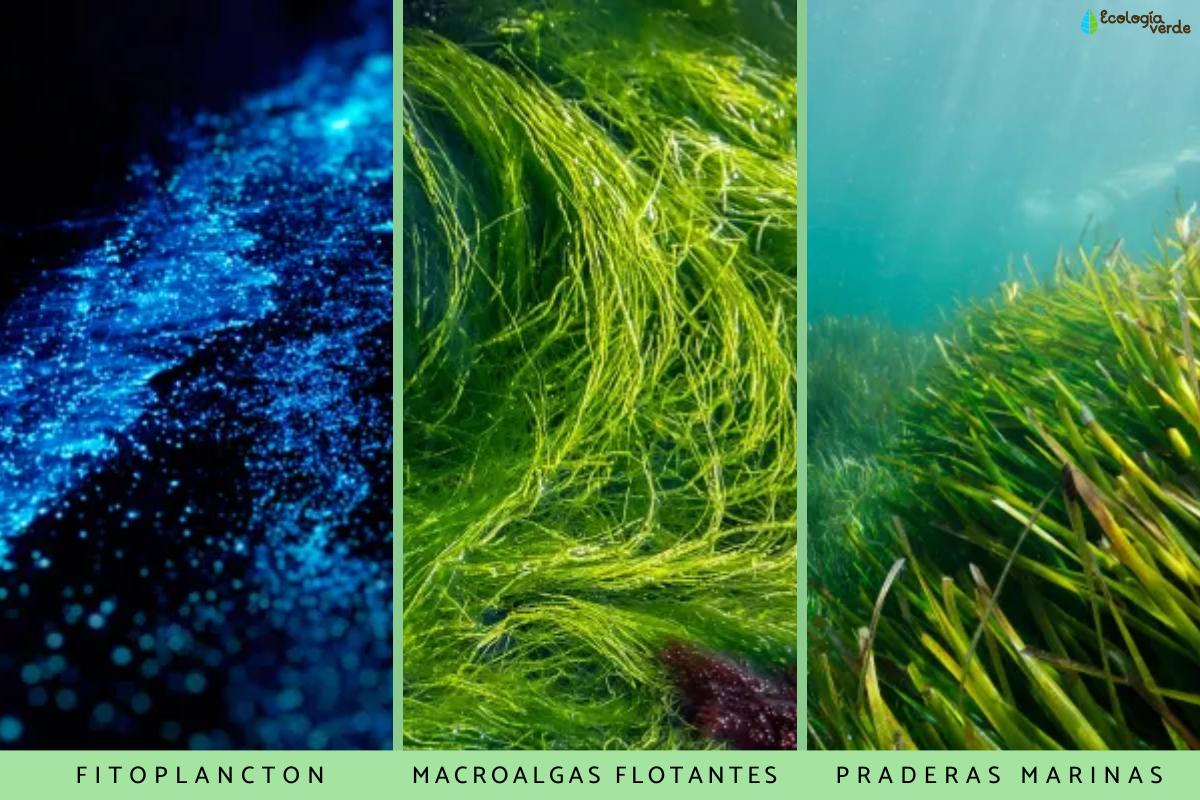 - Fitoplancton: incluye microalgas como diatomeas, dinoflagelados y cianobacterias. Estos organismos son los principales productores primarios en esta capa. En este otro post te contamos más acerca de Qué es el fitoplancton.
