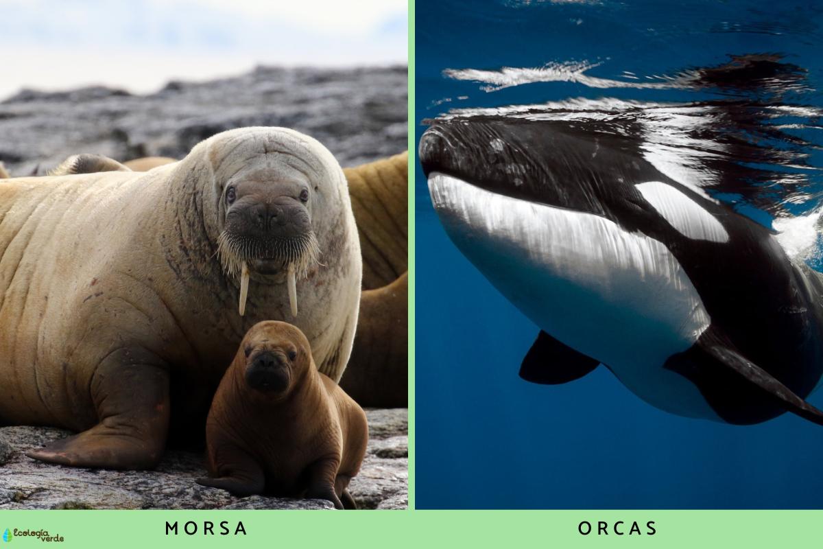 - Pinnípedos, como morsas, lobos y elefantes marinos.